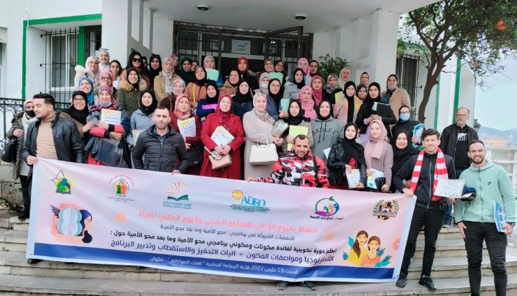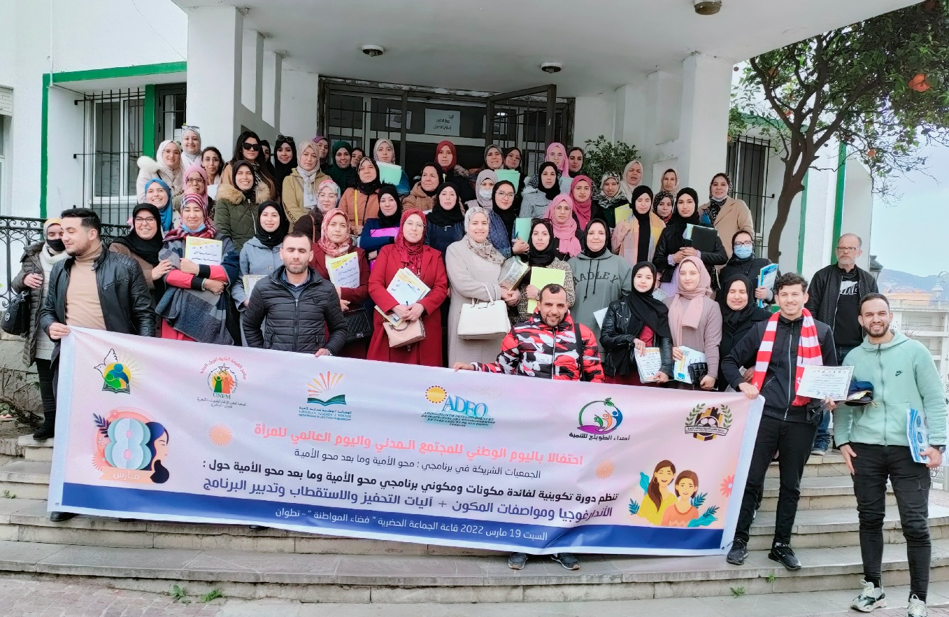 احتفالا باليوم العالمي للمرأة واليوم الوطني للمجتمع المدني وتماشيا مع أهداف اتفاقيات الشراكة الموقعة بين الوكالة الوطنية لمحاربة الأمية وبعض الجمعيات الشريكة في برنامجي محو الأمية وما بعد محو محو الأمية بإقليم تطوان، ومن أجل تجويد برامج تعليم الكبار والرفع من مهارات وقدرات الأطر العاملة في هذا المجال (مكونين ، مشرفين ، فاعلين جمعويين)، احتضن فضاء المواطنة ( الجماعة الحضرية – تطوان ) دورة تكوينية لفائدة مكونات ومكوني برامج تعليم الكبار ، تمحورت حول عدة نقاط أبرزها : مبادئ الأندارغوجيا ومواصفات المكون(ة) + آليات الاستقطاب والتحفيز + آليات توثيق وتدبير البرامج.