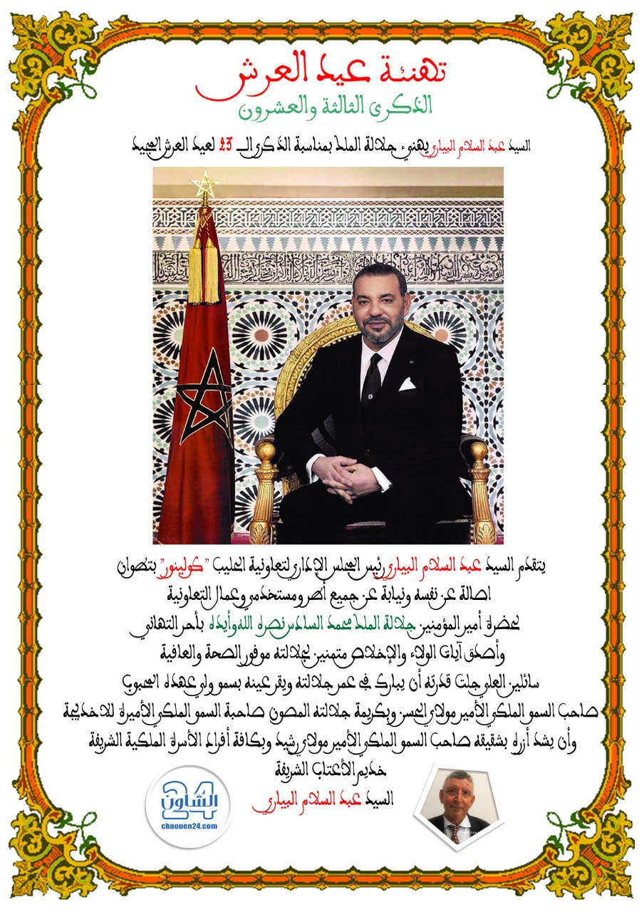 رئيس المجلس الإداري لتعاونية الحليب كولينور السيد “عبد السلام البياري” يهنئ جلالة الملك بمناسبة الذكرى ال23 لعيد العرش المجيد في يوليو 31, 2022 انشر