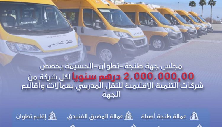 صادق مجلس جهة طنجة-تطوان-الحسيمة على تخصيص غلاف مالي سنوي قدره 2 مليون درهم لفائدة شركات التنمية الإقليمية للنقل المدرسي، وذلك في خطوة استراتيجية تروم الارتقاء بخدمات النقل المدرسي بمختلف عمالات وأقاليم الجهة.