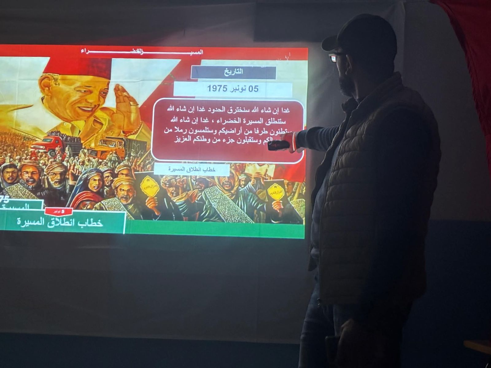 وتناول العرض محاور متعددة أبرزها دلالات المسيرة الخضراء في ترسيخ الوحدة الترابية للمملكة، ودور الملك الحسن الثاني طيب الله ثراه في قيادة هذا الحدث التاريخي بروح السلم والإيمان، إلى جانب القيم الوطنية التي تجسدها هذه المسيرة في نفوس المغاربة.
